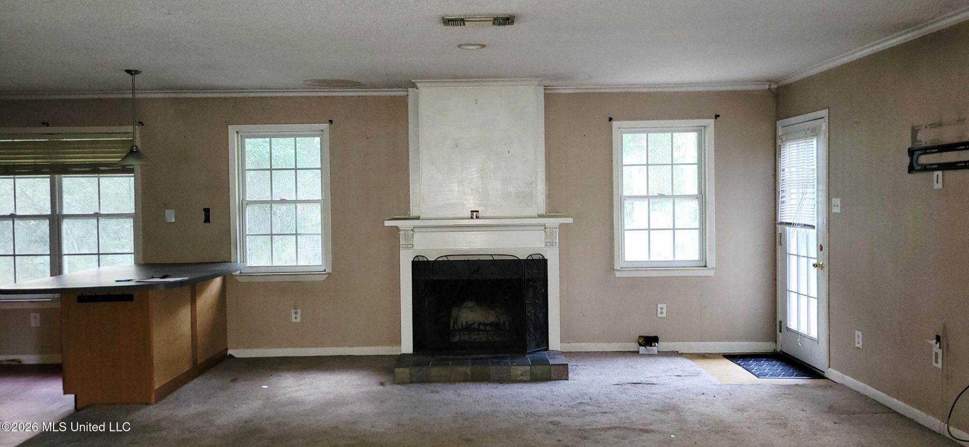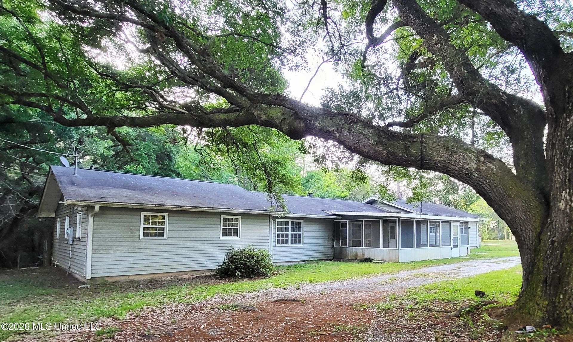 Country living at its best on this beautiful, oak tree-shaded lot, 1 acre, corner lot. Enjoy an open living area with cozy fireplace and a desirable split floor plan for added privacy. The spacious kitchen features a convenient center island, perfect for meal prep and entertaining. Relax on the screened-in front porch and take in the peaceful surroundings. Bring your imagination to complete the repairs to make this your own. ** Only owner occupant offers considered for the first 30 days**