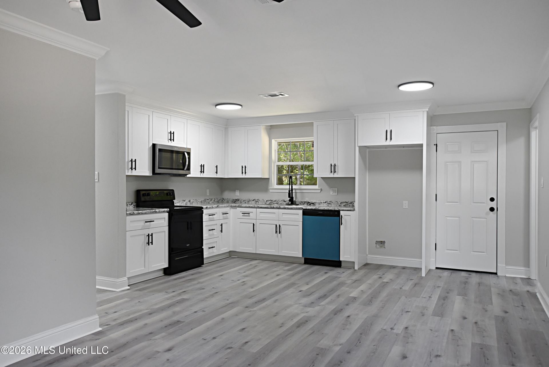 4 Bedrooms and 2 full baths. A block from elementary school. No flood ins. required. Total remodel. New roof, paint, flooring, plumbing and electrical fixtures, cabinets, counters, appliances.