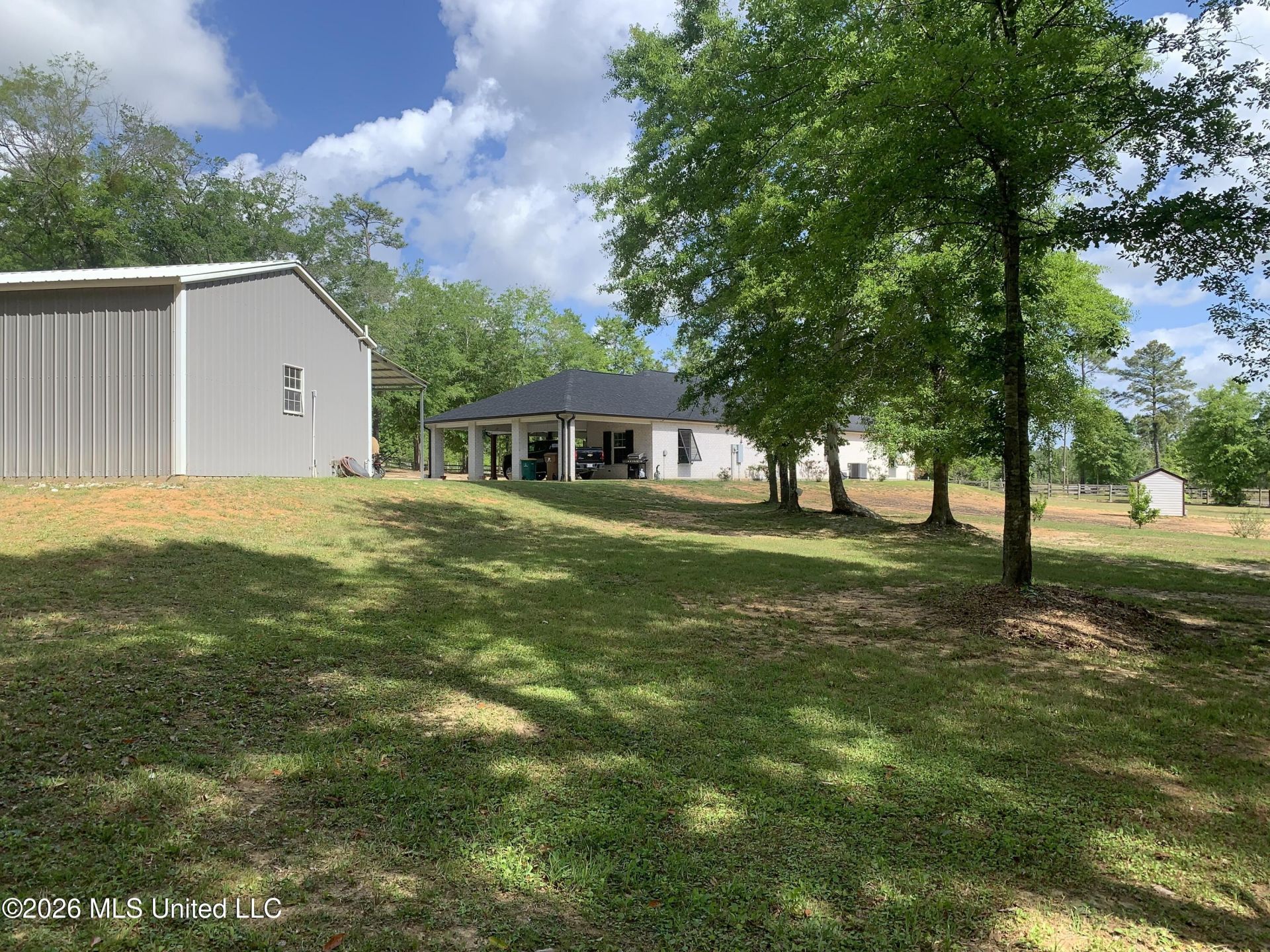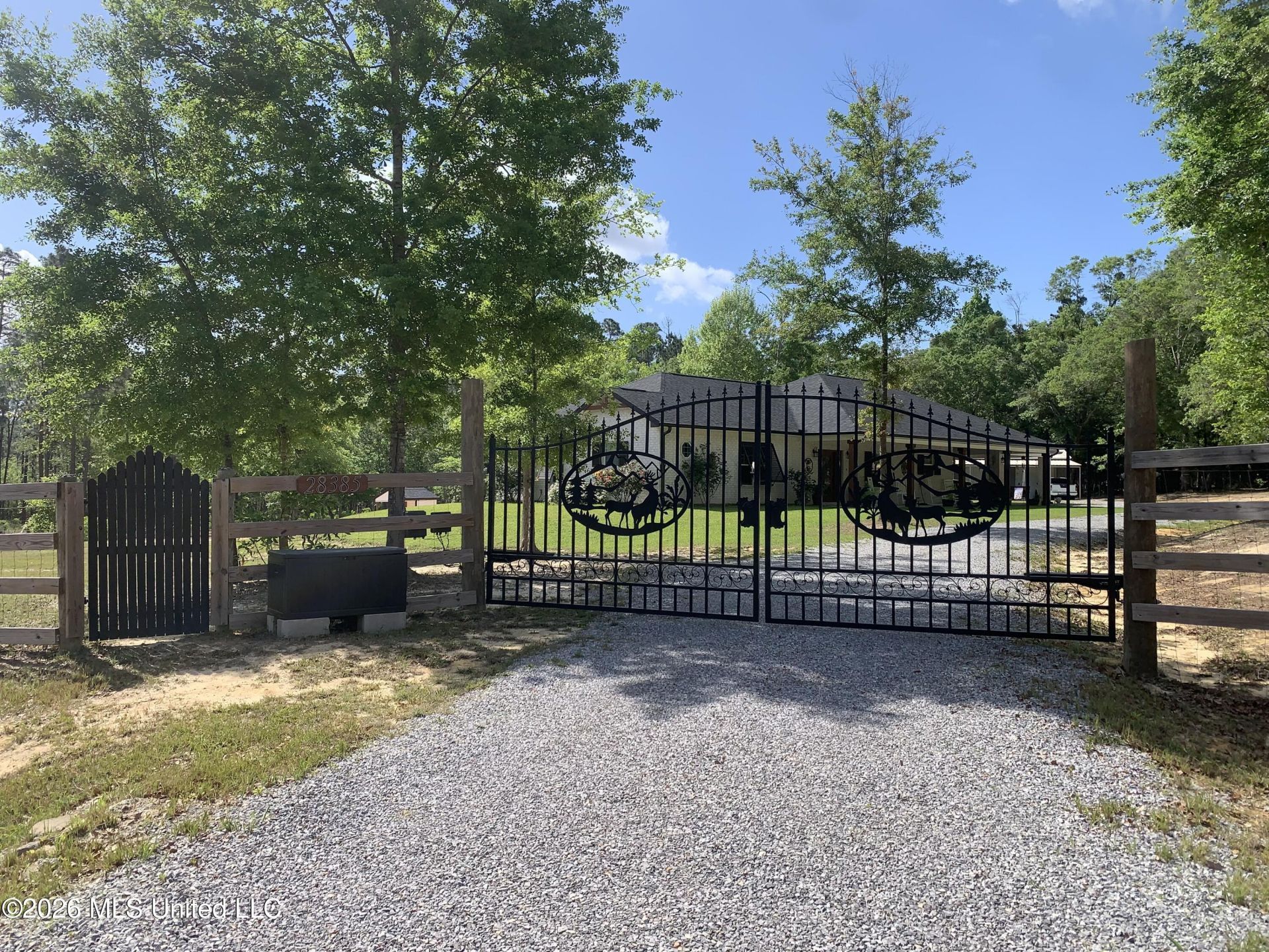 Nestled on 1.8 peaceful acres, this beautiful home offers the perfect blend of modern comfort and country charm. Featuring an open concept layout, the spacious living area showing vaulted ceilings and wood trim box windows flows seamlessly in a dining room with tray ceilings and kitchen with custom cabinets with all lower drawers on bottom and granite counter tops and all stainless appliances. This plan provides added privacy , with a generous primary suite apart from the additional bedrooms. Step out onto spacious over 1200 sq.ft. of porches. The 1.8 acres totally fenced with secured electric gates. Plenty of room for your toys with a 24 X 40 metal building with a half bath and a 12X40 covered porch with 2 rollup doors. Enjoy your early morning with all the singing birds in the abundance of trees. A short 10 minute drive to Buc-ee's! 15 minute drive to beautiful beaches and all Mississippi Coast has to offer.
