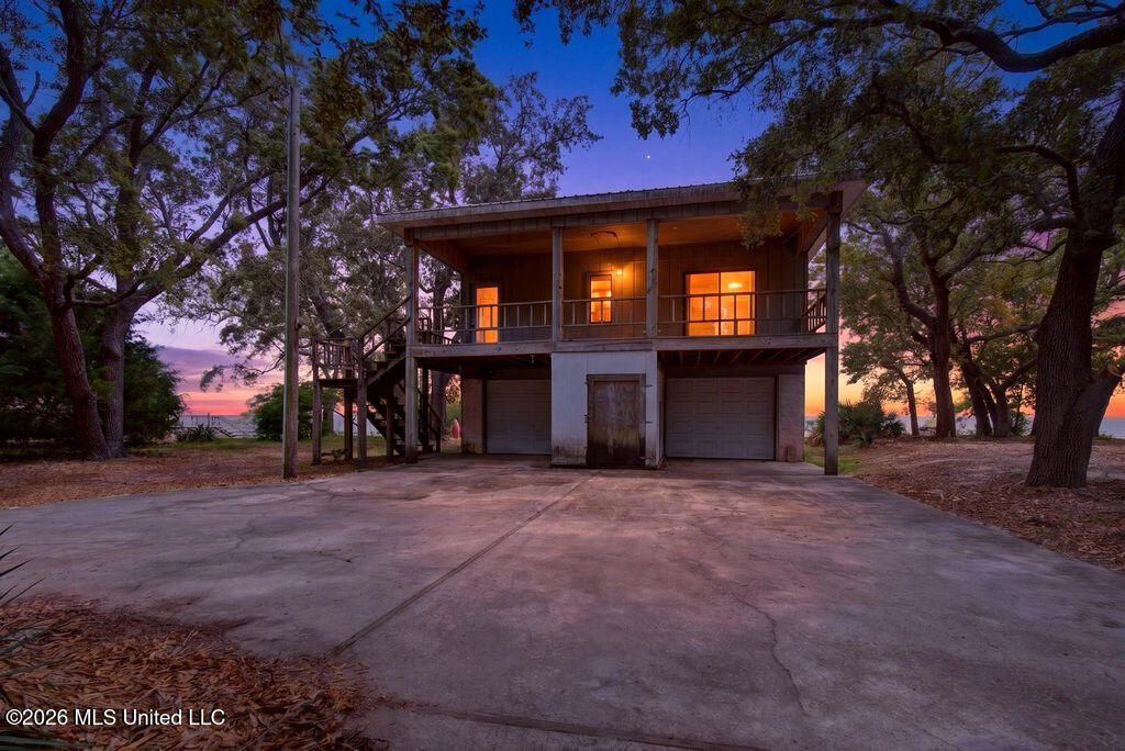 Positioned along coveted East Belle Fontaine Rd in Ocean Springs, this coastal property offers a rare chance to create your own waterfront retreat. Set on an expansive 0.87-acre lot, the property is framed by classic, mature Southern coastal landscaping that adds charm, privacy, and a true sense of place. The home spans approximately 1,320 square feet with two generously sized bedrooms and two full baths. Elevated, it offers both functionality and peace of mind, with a fully enclosed lower level providing abundant storage for tools, watercraft, or hobby space and two garage spaces. While the home reflects its age and will require renovation, the setting is nothing short of exceptional. Enjoy an impressive 106 feet of water frontage for unobstructed Gulf views, delivering breathtaking scenery, views of Horn Island, coastal breezes, and unforgettable sunrises and sunsets right from your own property. Flanked by significantly newer, high-value homes, this location underscores the long-term potential for transformation. Whether you're envisioning a renovation project, coastal getaway, or future investment. The possibilities here are substantial. Offered at $399,999, this property presents a compelling opportunity for buyers ready to bring their vision to life. Renovation financing or other lending options may be considered for qualified buyers with their lenders. Owner financing will not be available.