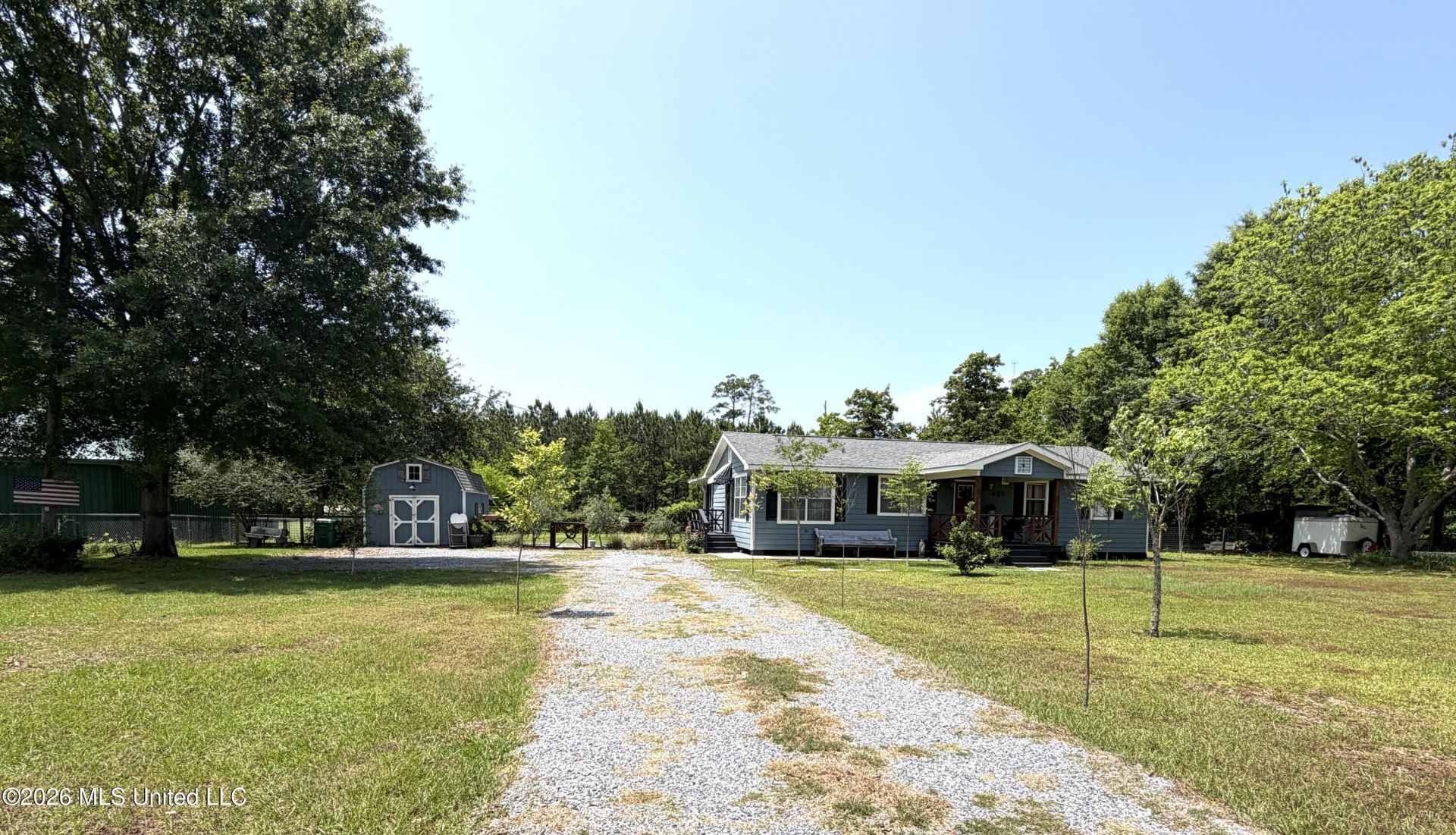 Peaceful, serene and a gardeners heaven with over an acre of land! Three bedrooms two baths with a private guest house in the back in the heart of Waveland a hop from Coleman. This home sits on a huge lot offering a country like feel blocks away from the beach (.8 miles) A short walk or bike ride. Take in nature and greenery and sit on a fun mostly screened porch. The private efficiency guest house offers 339 ft.² of living area and a cozy front porch nestled in the back of the property with its own entrance and septic tank. The property bares beautiful fruit trees: pecan, apple, blackberry, fig, olive and more. There's plenty of storage with the 16 x 12 garage and golf cart carport in the back. All appliances remain including two refrigerators range/oven, microwave, and washer and dryer. As a bonus, a riding lawnmower.